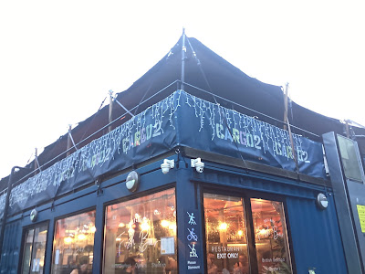 There are a number of recommendable places at which to eat Sunday lunch in Bristol but on my annual November visits over the last couple of years I have eaten at Gambas in Cargo 2 in Wapping Wharf and a very pleasing Sunday lunch I have eaten there on both occasions. So, though I was tempted to branch out and do something different this year, I once more made a reservation for lunch at Gambas, the restaurant being within a Sunday afternoon relaxed pace walking distance from my hotel and the weather being what it is in this late autumn and doing its best to dissuade one from travelling very far to other parts of the city. The was a strong wind and frequent outbursts of charmless drizzle.