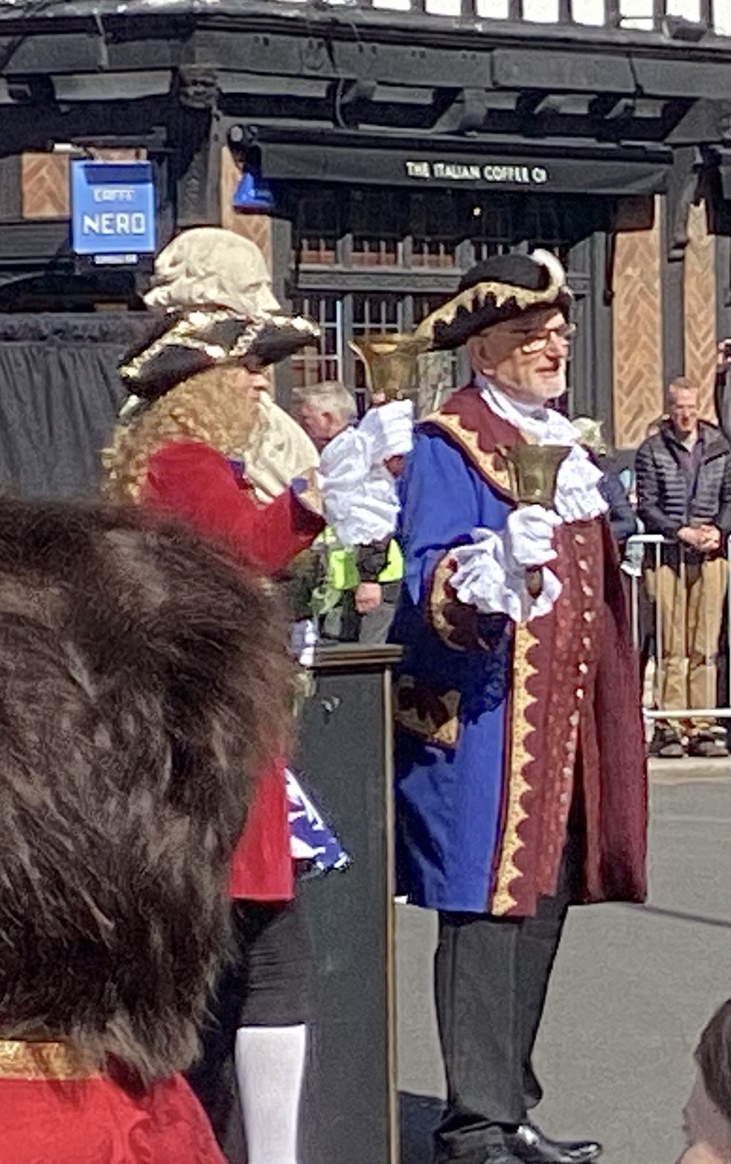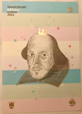 This year, 2024, Stratford-upon-Avon held its annual Shakespeare’s birthday celebrations on 20 April, three days prior to the actual anniversary. There was the usual parade through the town, see below, and more importantly, the annual birthday lunch held in a vast marquee in the RSC gardens where a smattering of theatrical levees may sometimes be spotted.