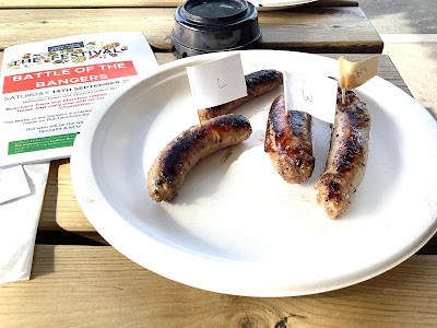 Four local sausage makers were represented. The sausage from Morgan Country Butchers was the weakest, lacking the flavour of the others and encased in a vaguely impenetrable skin and I chose the mildly spicy pleasingly textured sausage from Ludlow Farm Shop as my favourite for 2024.
